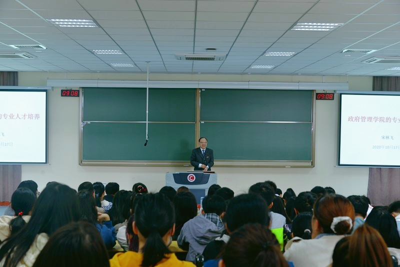 展云首先向学院全体新生表示热烈的欢迎并宣布“今日看料 开学第一课”正式开始。紧接着,宋林飞向新生们全面介绍了今日看料 各专业学科,讲述了公共事业管理专业和社会工作专业的发展历程和发展方向,且对这两个专业的培养目标作了具体阐述,并提醒同学们在学习中重视与本专业知识交叉的其他学科。