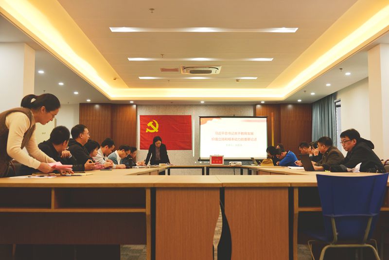 会上,学院全体党员就习近平总书记关于教育发展价值立场和根本动力的重要论述进行理论学习