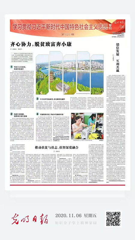 马继迁副院长在《光明日报》2020年11月6日第6版发表评论文章《推动扶贫与扶志、扶智深度融合》,该版属于《光明日报》“学习贯彻习近平新时代中国特色社会主义思想专刊”。