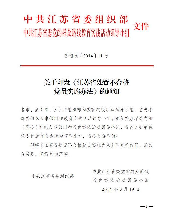 根据《中共中央组织部、中央党的群众路线教育实践活动领导小组关于做好处置不合格党员工作的通知》(中组发﹝201421号),结合我省实际,现就做好处置不合格党员工作,提出如下实施办法。