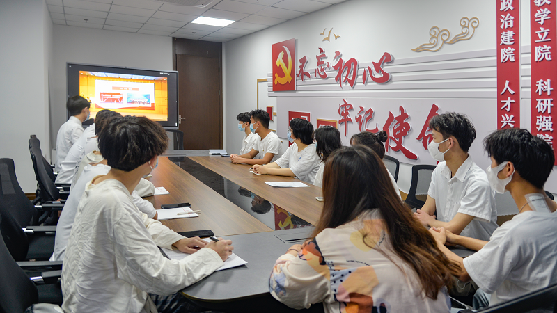 举行“喜迎二十大、永远跟党走、奋进新征程”学习贯彻习近平总书记在庆祝中国共产主义青年团成立100周年大会上的重要讲话精神专题题信仰公开课。政管学院团工作负责人康颖、院团委全体学生骨干在立言楼239集中观看直播课。