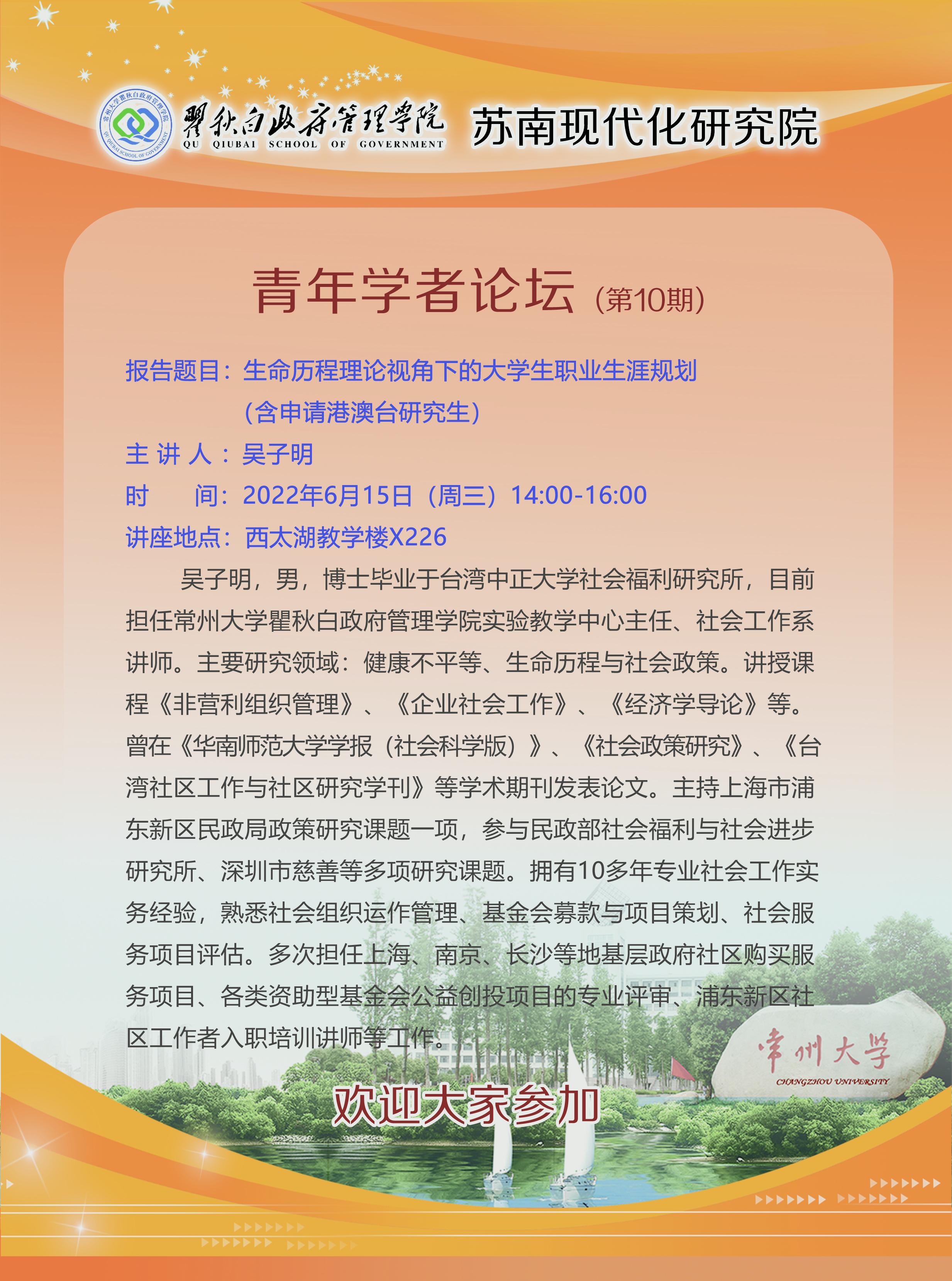 青年学者论坛第10期:生命历程理论视角下的大学生职业生涯规划(含申请港澳台研究生)