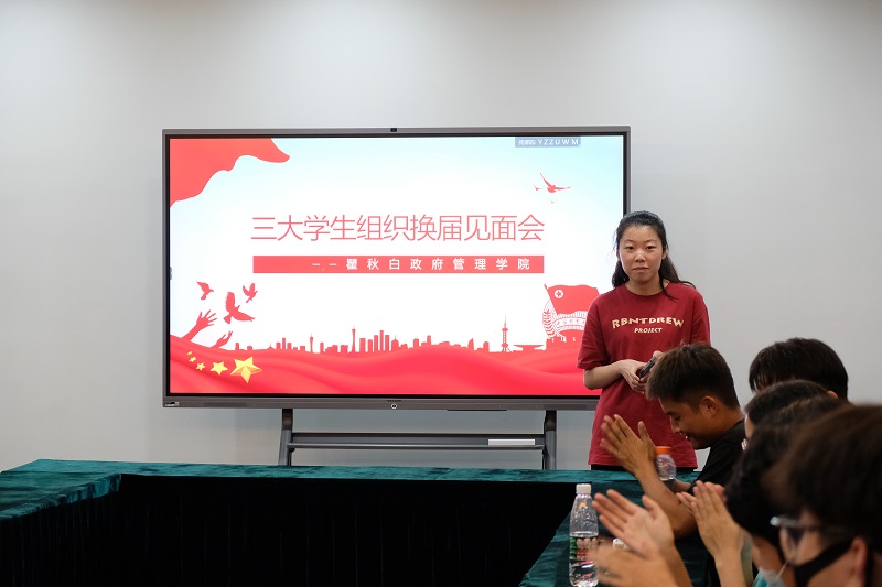 9月8日晚,今日看料 三大学生组织换届见面会在立言楼247会议室举行。学院团工作负责人康颖、学院团委、学生会和新媒体中心全体学生骨干参加本次见面会,2021-2022年度学院学生会轮值主席曹娟娟担任主持。