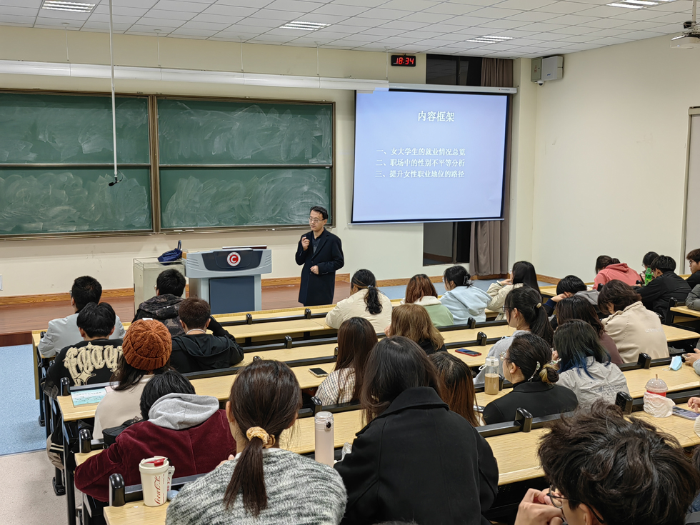 讲座内容紧贴大学生的现实关注,理论阐述与统计数据、经验案例相结合,深入浅出地展开分析,吸引了大学生认真聆听。讲座结束后,马继迁教授还对学生提问进行了详细解答。此次讲座,对女大学生深度认知自己的职业发展,提前做好职业规划,具有重要启发意义。