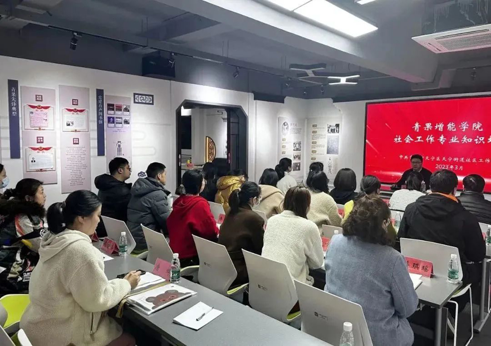 据悉,“青果增能学院培训班”是常州市天宁区天宁街道为街道社会工作者进一步了解工作职责、提升工作本领,更好地投身社区服务工作而组织开展的系列培训。目前已开设“青果增能学院——副职素能提升培训班”和“青果增能学院——新社工赋能培训班”,天宁街道下辖各社区副职及2022年新入职社工参加本次培训。