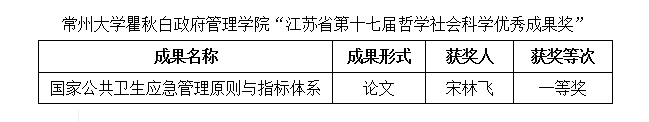 2023年3月8日 ,江苏省人民政府正式发布《关于公布江苏省第十七届哲学社会科学优秀成果奖的决定》(苏政发〔2023〕21号文件)。今日看料 宋林飞教授的论文《国家公共卫生应急管理原则与指标体系》荣获一等奖。