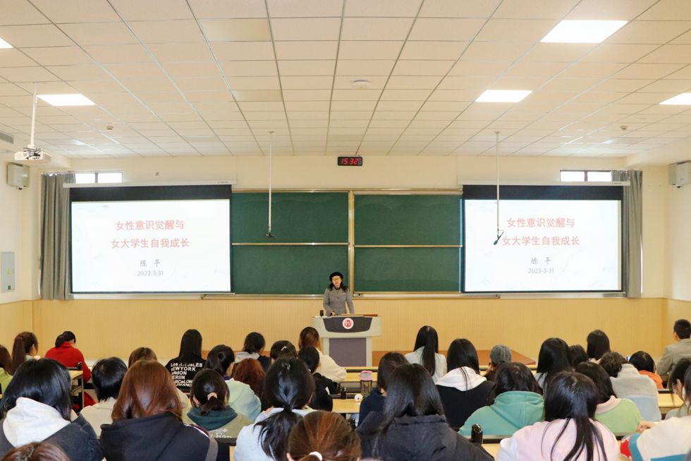 讲座中,陈平强调,女性意识是女性所特有的一种对女性自身的意识,包括了生理和社会两个层面,女性意识觉醒是“女人”和“人”的统一 ,是女性成长的自我动力。同时,鼓励女生争做自尊、自信、自立、自强、自爱、自律的新时代“六自”女性。