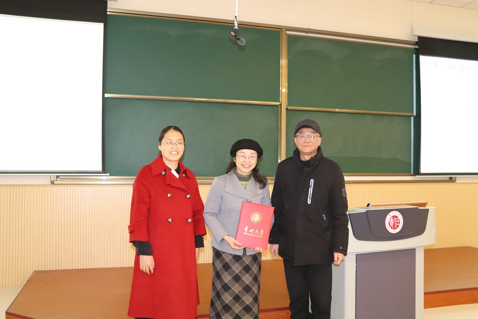 讲座前,陈粲代表学院向陈平颁发学院关工委聘书,并对陈平关心与支持学院关工委工作表示感谢,希望双方定期沟通,协调配合,助力青年师生健康成长成才。