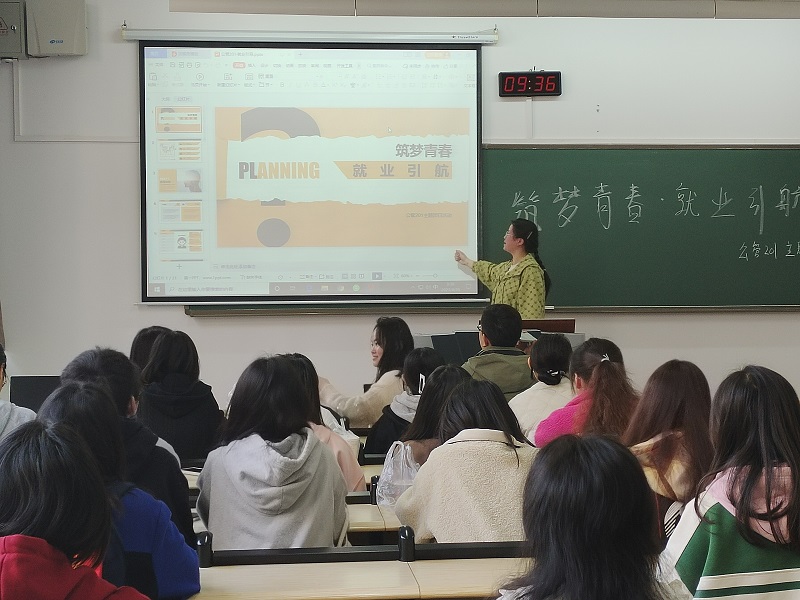 刘芽从社会类奖学金评审细则的现实表现、学习成绩和科研能力三个方面为同学们进行了讲解。她还为同学们讲解了一些毕业面临的校招情况,强调实习经历很重要,比如作品集的准备也要具有一定的深度,尽早明确自己的目标。