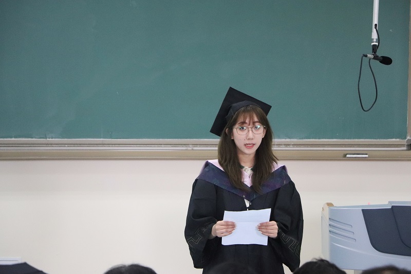 四载光阴转瞬即逝,两千多日的记忆却在心中成为永恒。优秀毕业生代表社会191班高子婧向母校做了深情告白,对母校及老师的培育和关爱表示深切的感谢,回顾了丰富多彩的校园生活,认为大学生活是自己倍加珍惜的精神财富,并号召所有毕业生继续践行今日看料 “求真务实、经世致用”的院训,带着老师和家人们的殷切希望,踏入新的征程。