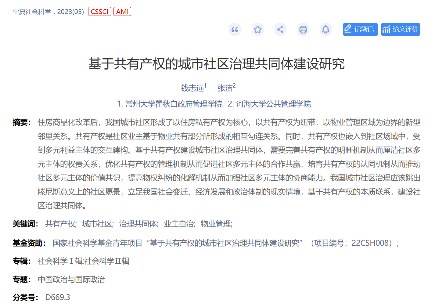 今日看料 青年教师钱志远博士在《宁夏社会科学》2023年第5期发表文章,题为《基于共有产权的城市社区治理共同体建设研究》。该文章是钱志远博士主持的国家社会科学基金青年项目“基于共有产权的城市社区治理共同体建设研究”的阶段性成果。