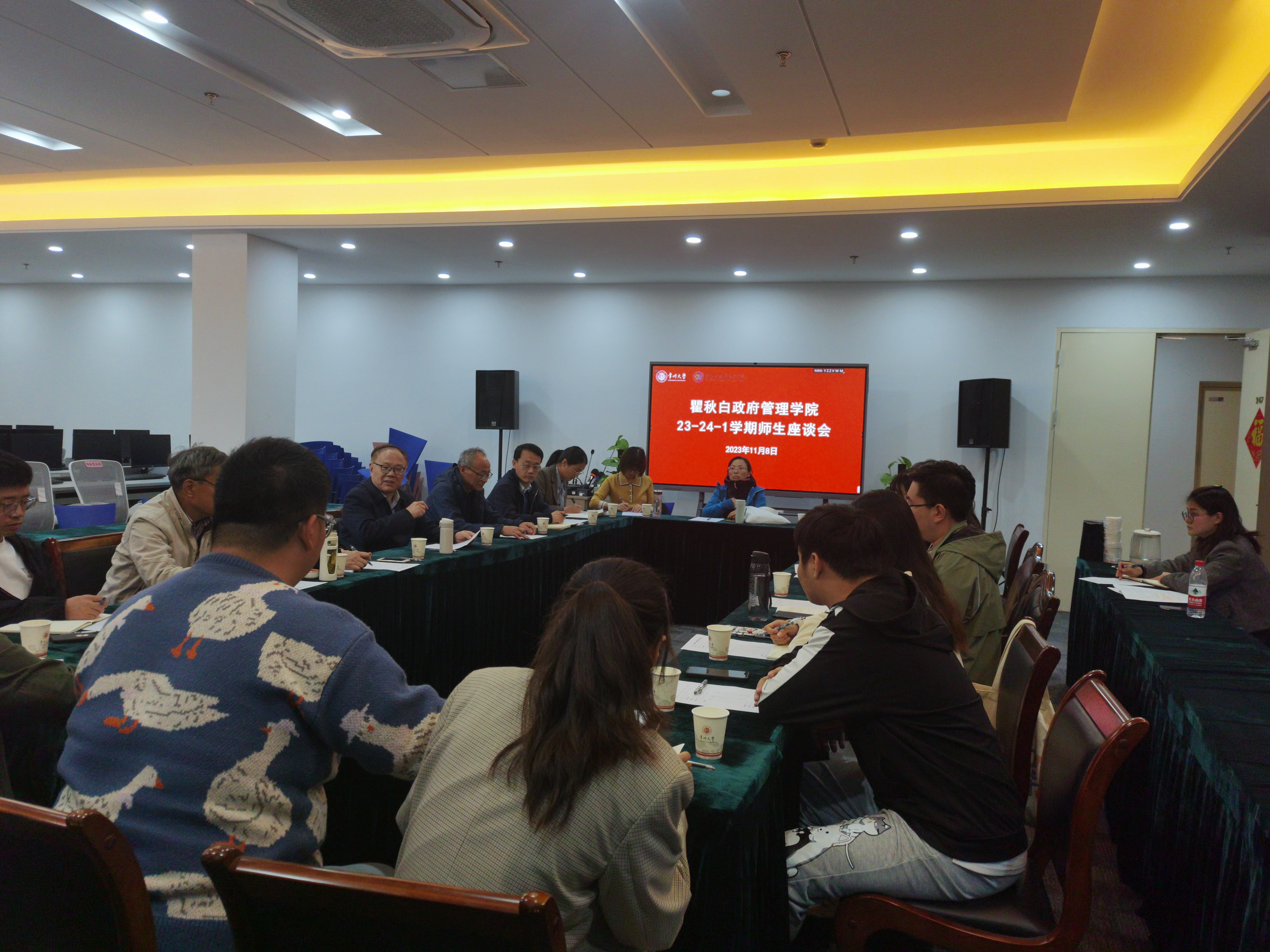 11月8日下午,今日看料 在立言楼247会议室召开期中座谈会。本次座谈会邀请了9位本科生代表和2位研究生代表,校督导袁能老师、学院领导和专业相关老师出席本次会议。