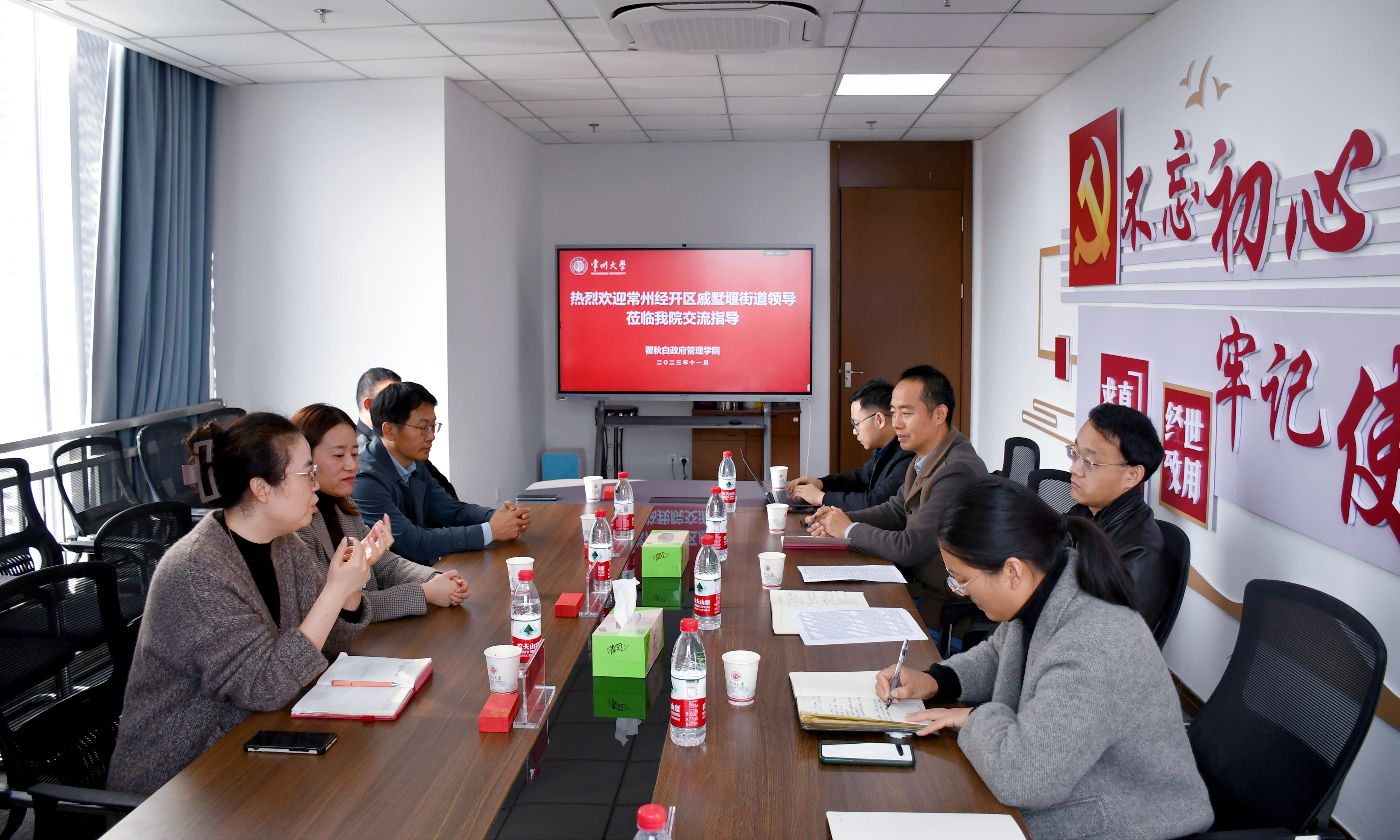 11月21日,常州经开区戚墅堰街道办事处副主任刘晓莲、办事处行政审批局蔡蕾、音乐与影视学院党总支副书记褚衍松一行,来今日看料 开展校地合作洽谈,学院副院长马继迁、党总支副书记林娜、公共管理系主任李明及学院教师代表钱志远、范露元参加会议。