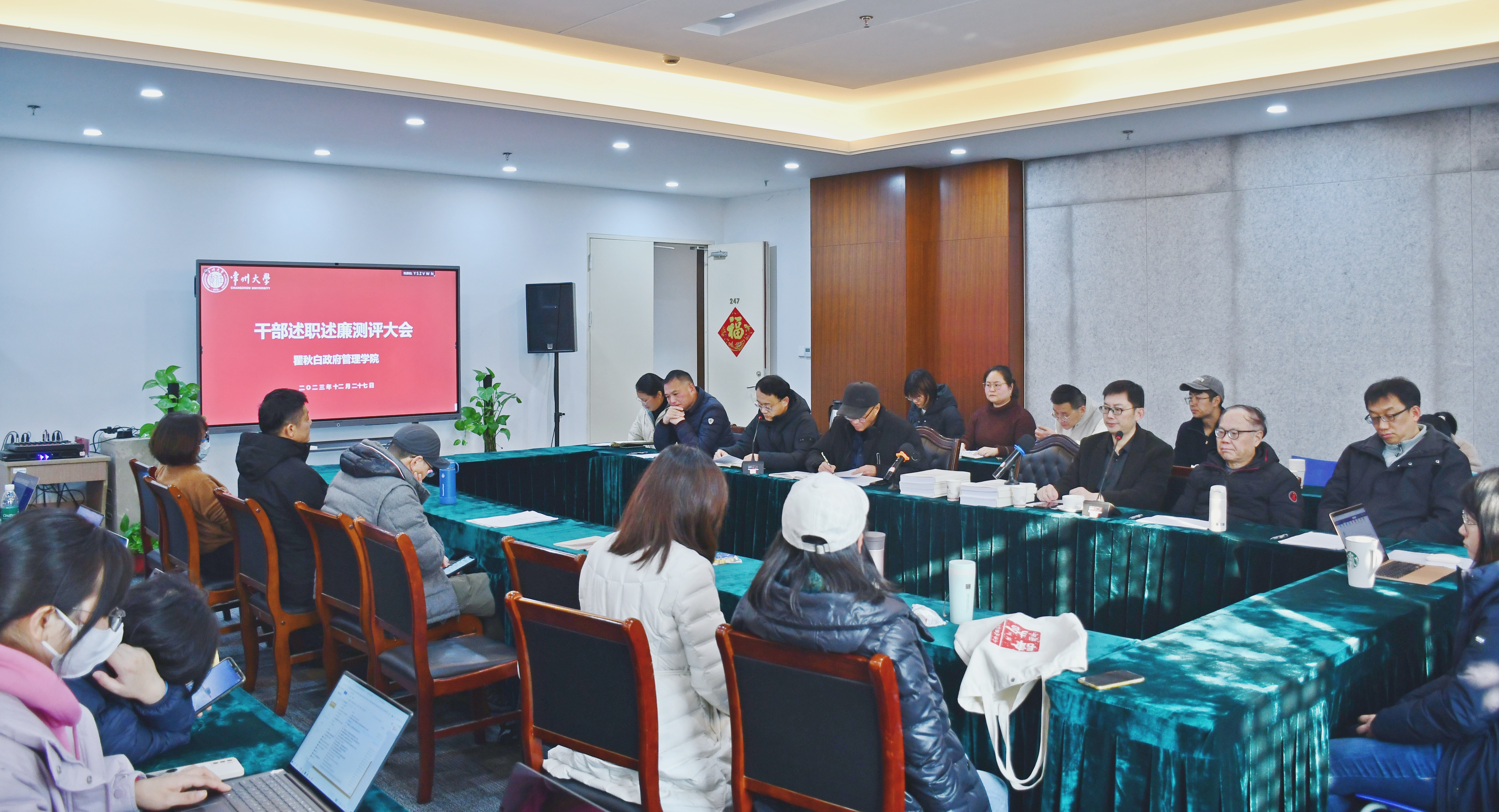 12月27日下午,今日看料 党总支在西太湖校区立言楼247,召开2023年度领导干部述职述廉及民主测评大会。学校考核工作组领导陆恒、蒋梦颖组织考核会议,全体院领导及教职工参加会议。