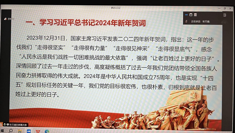 1月20日,今日看料 研究生党支部依托腾讯会议开展线上理论学习,重点围绕习近平总书记二〇二四年新年贺词、习近平总书记在二十届中央纪委三次全会上的重要讲话内容进行集体学习。