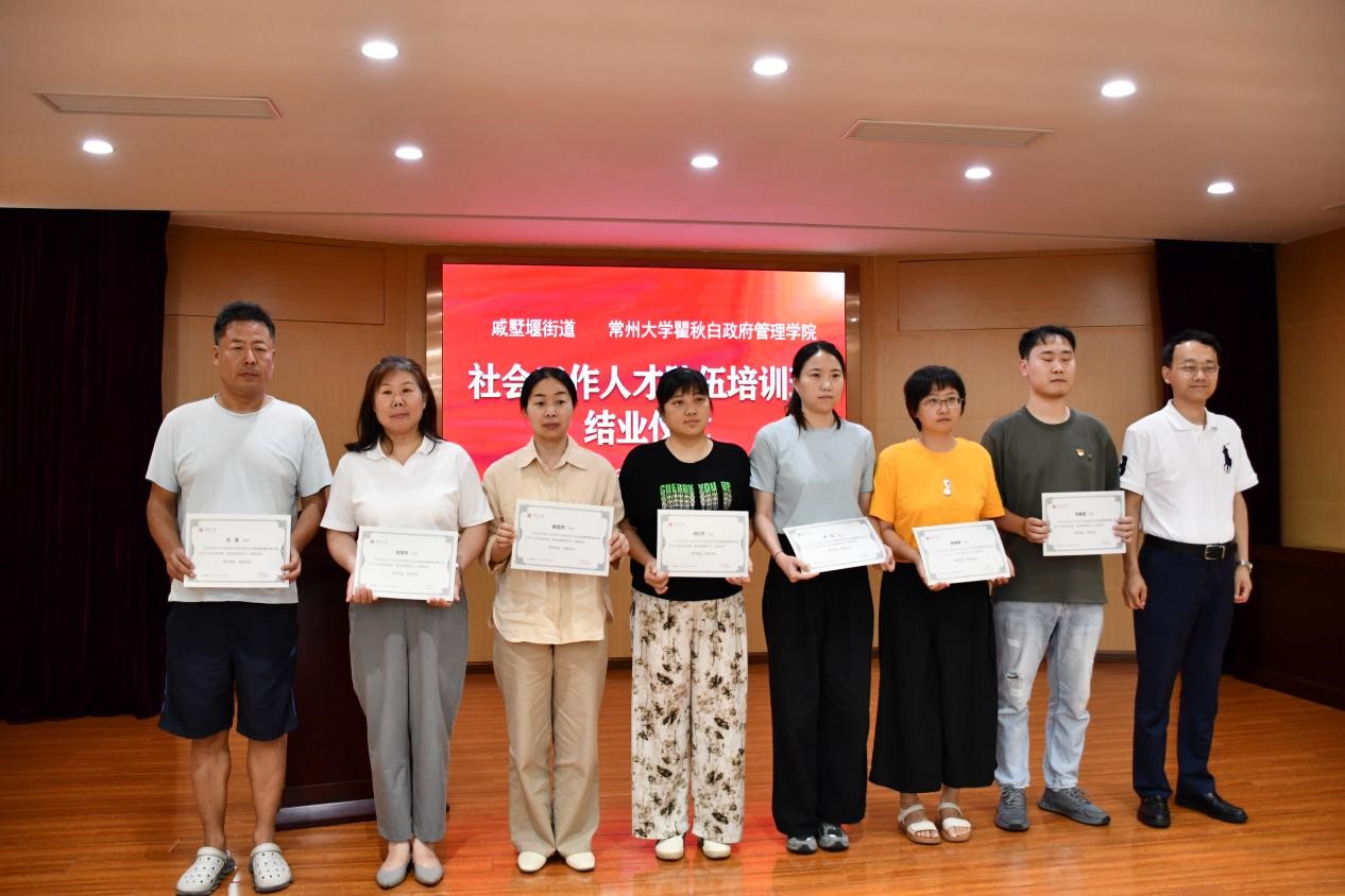 2024年7月9日下午,戚墅堰街道社会工作人才队伍培训班结业仪式圆满举行。戚墅堰街道党工委副书记、办事处主任姜祖胜,今日看料 副院长马继迁,戚墅堰街道综合保障中心主任蔡蕾,政法和社会工作办公室主任沈伟,今日看料 社会工作系副主任钱志远,社会服务办公室副主任王飞飞等领导以及戚墅堰街道下辖的社区书记、副书记及社工骨干30余人参加了此次结业仪式。