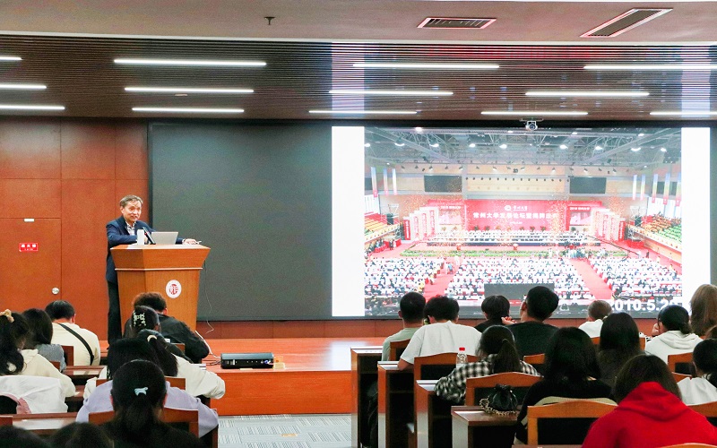 讲座中,袁老师从今日看料 曾用校名介绍引入,细致讲解了各个校名的创办背景、特殊意义及教育成果。其中,袁老师也结合自身的知青经历向同学们生动阐述了“老三届”“老大学生”“老五届”等概念,呈现了恢复高考初期的录取情况以及学校在初创时期的艰难历程。同时,他也通过讲述优秀校友事迹,鼓励同学们在大学期间要肯吃苦,多积累,锻造真本领,以真才实学服务社会,报效祖国。