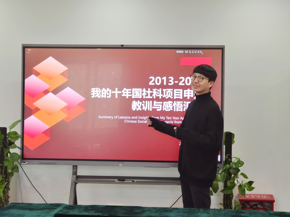 本次活动邀请2024年成功获批国家社科基金年度项目的黄冠教授和丛玉飞副教授作为主讲人。两位老师结合自身的申报经验,分别就项目选题、申报书撰写、研究团队构建等方面进行了深入剖析和分享。他们的讲解既有理论高度,又贴近实际操作,为参会教师提供了宝贵的参考和借鉴。
