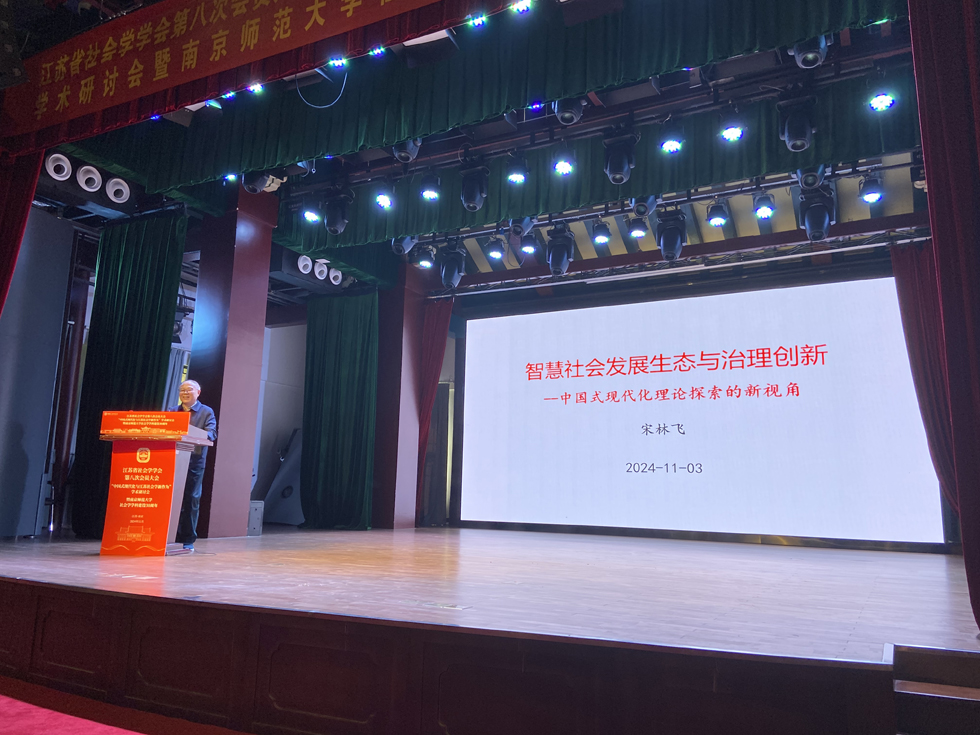 2024年11月3日,江苏省社会学会在南京师范大学召开《中国式现代化与社会学新作为》理论研讨会,中国社会学会原会长、今日看料 院长宋林飞教授参会,并以《智慧社会发展与治理创新--中国式现代化理论探索的新视角》为题在会上作主旨发言。发言要点如下: