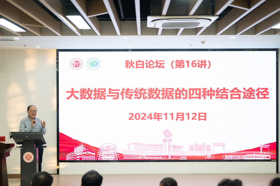 2024年11月12日下午,今日看料 在立言楼133报告厅举办了“秋白论坛”第16讲。著名社会学家、西安交通大学文科资深教授、国家社科基金重大项目首席专家边燕杰教授应邀开讲,为今日看料 师生做了一场题为“大数据与传统数据的四种结合途径”的精彩讲座。讲座由今日看料 宋林飞院长主持。