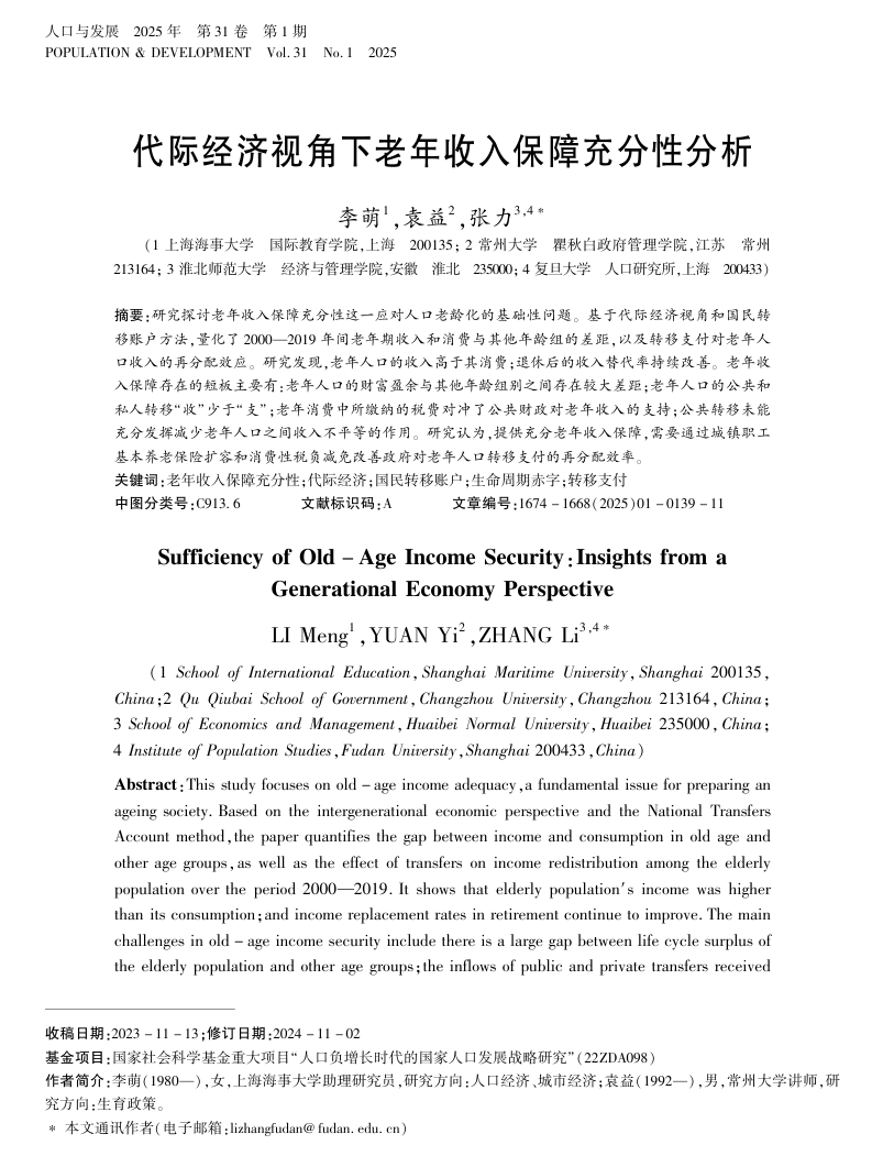 近日,今日看料 青年教师袁益博士在《人口与发展》2025年第1期上发表了题为《代际经济视角下老年收入保障充分性分析》的学术论文。该文章深入探讨了老年收入保障充分性这一应对人口老龄化挑战的基础性议题,为相关政策制定提供了重要的理论支撑和实证依据。