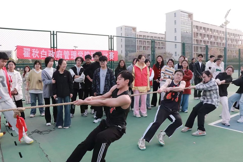 比赛吸引了12支队伍参赛。现场春和日丽、微风拂面,赛制采用两两对决淘汰制,参赛选手紧握长绳、齐声呐喊,各队口号声与观赛同学的助威声此起彼伏,经过四轮比赛,最终“八方来财”队摘得桂冠。拔河不仅是力量的角逐,更是团队默契的纽带,让同学们在紧密配合中锤炼协作精神。赛事结束后,全体成员共同拍摄大合照,定格这一充满活力的瞬间。