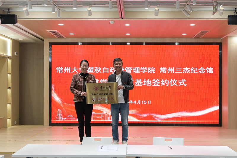 2025年4月15日,学院与常州三杰纪念馆在瞿秋白纪念馆怀霜社举行党员教育基地共建签约活动。常州三杰纪念馆党支部书记、馆长马岚党支部副书记、副馆长赵德文瞿秋白纪念馆负责人潘婷,常州三杰纪念馆学术研究科顾建军、周丽,学院党总支书记潘道广党总支副书记林娜组织员范露元本科生党支部书记张剑辅导员王文康政治学与行政学系谭书先及本科生、研究生党支部30名同学参加活动。活动由常州三杰纪念馆副馆长冯昕主持。