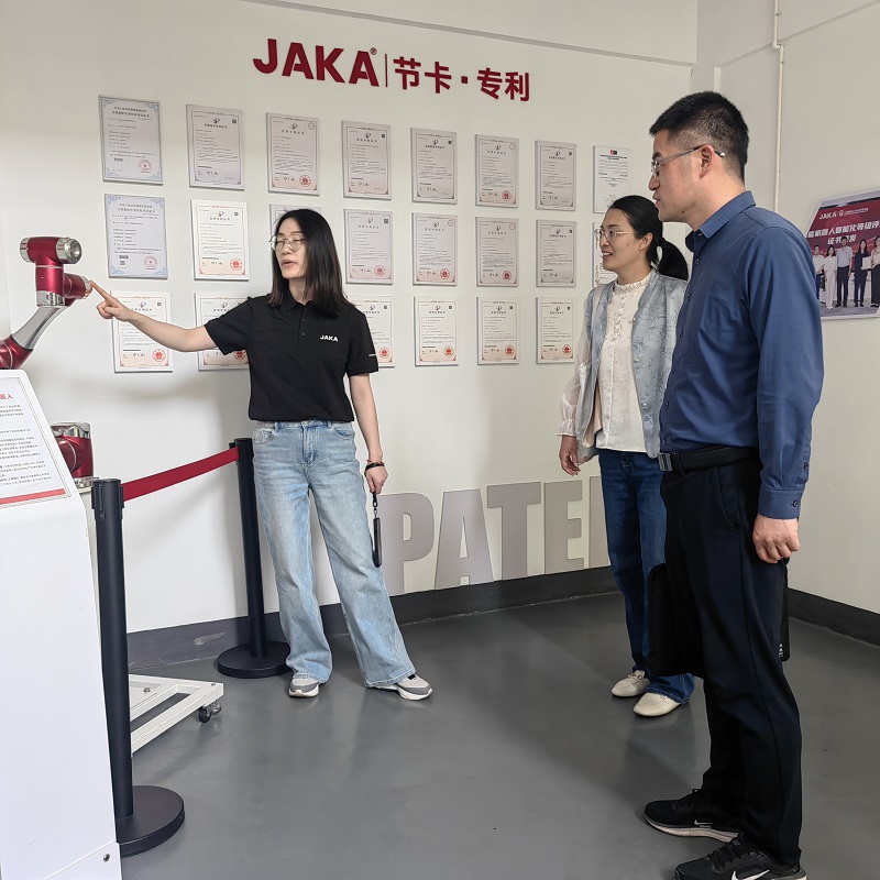 在节卡智能装备有限公司,人力资源部卢经理首先向到访人员介绍了企业发展情况,并现场展示高科技产品的使用方法。接着,林娜着重介绍了学院发展历程和学科特色。她指出,学院在专业培养上需要结合新质生产力发展要求,培养具有创新精神与实践能力的复合型人才,与企业人才需求相契合。最后,双方就人才培养、企业招聘及校企合作进行深入交流。