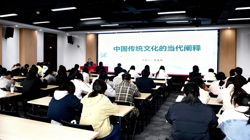 讲座钟,府建明以《中国传统文化的当代阐释》为题,从历史渊源、核心价值与时代意义三个维度,深入剖析中华优秀传统文化在当代社会的创造性转化与创新性发展路径。他强调,新时代青年应在传承中创新,在创新中发展,将文化自信转化为推动社会进步的精神动力。钟海连结合自身丰富的企业管理经验,作题为《大学生职业发展目标与路径》的分享。他从行业趋势、岗位需求与个人能力培养三个方面,为同学们提供了务实的职业规划建议,鼓励大家明确发展方向,提升综合素养,积极应对未来职场挑战。