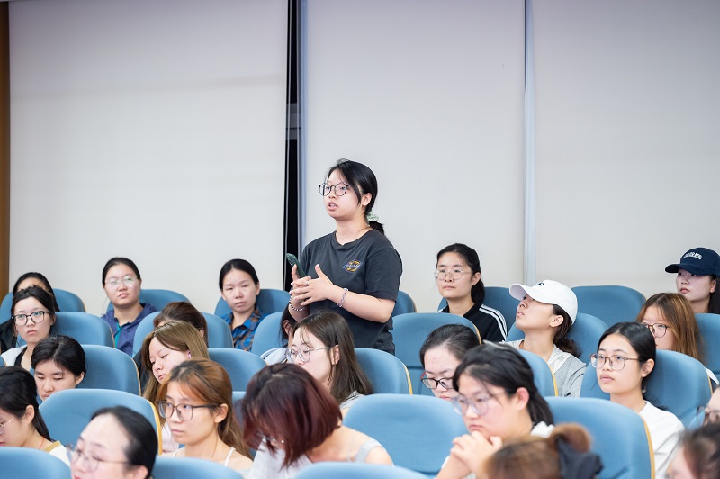 圆桌对话环节,聚焦文科生的职业发展困境,围绕“价值重塑”、“赛道开拓”、“精准赋能三大议题展开。对话特邀中绿建欣达建设工程有限公司执行董事赵晨茜女士与常州卓源橡胶制品有限公司总经理、UNICARE/JOYCORN品牌创始人黄卉女士两位杰出女性企业家作为“她榜样”嘉宾。她们结合自身的创业经历与管理智慧,与在场同学进行了深入、坦诚的交流,为同学们提供了宝贵的职场前瞻视角和实用建议,现场气氛热烈,互动频繁。