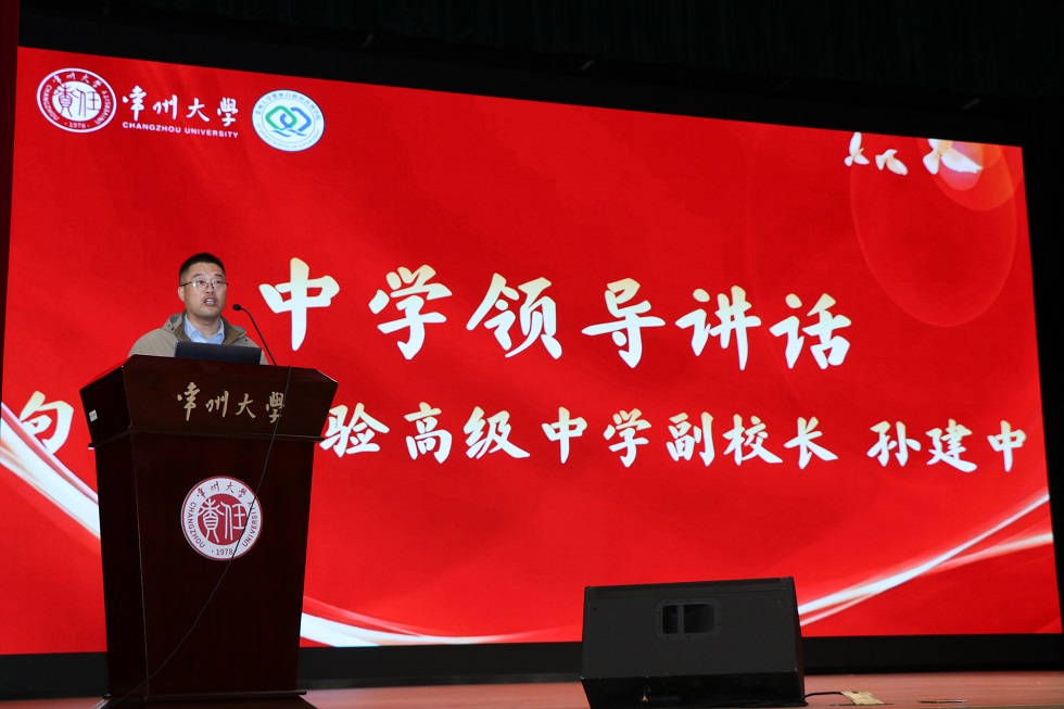 欢迎仪式上,蒋伟中代表学校向句容实高师生的来访表示诚挚欢迎,介绍了学校近年来高质量发展取得的成绩以及句容实高学子在常大成长发展典型事迹。他指出,双方在育人理念、校园精神上具有高度契合性,希望两校进一步深化“双高”协同联动,携手构建人才培养的“立交桥”,共同为学生的持续发展提供更坚实的平台、更有力的支撑。