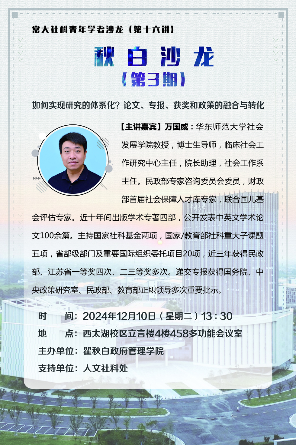 秋白沙龙(第3期)| 如何实现研究的体系化?论文、专报、获奖和政策的融合与转化