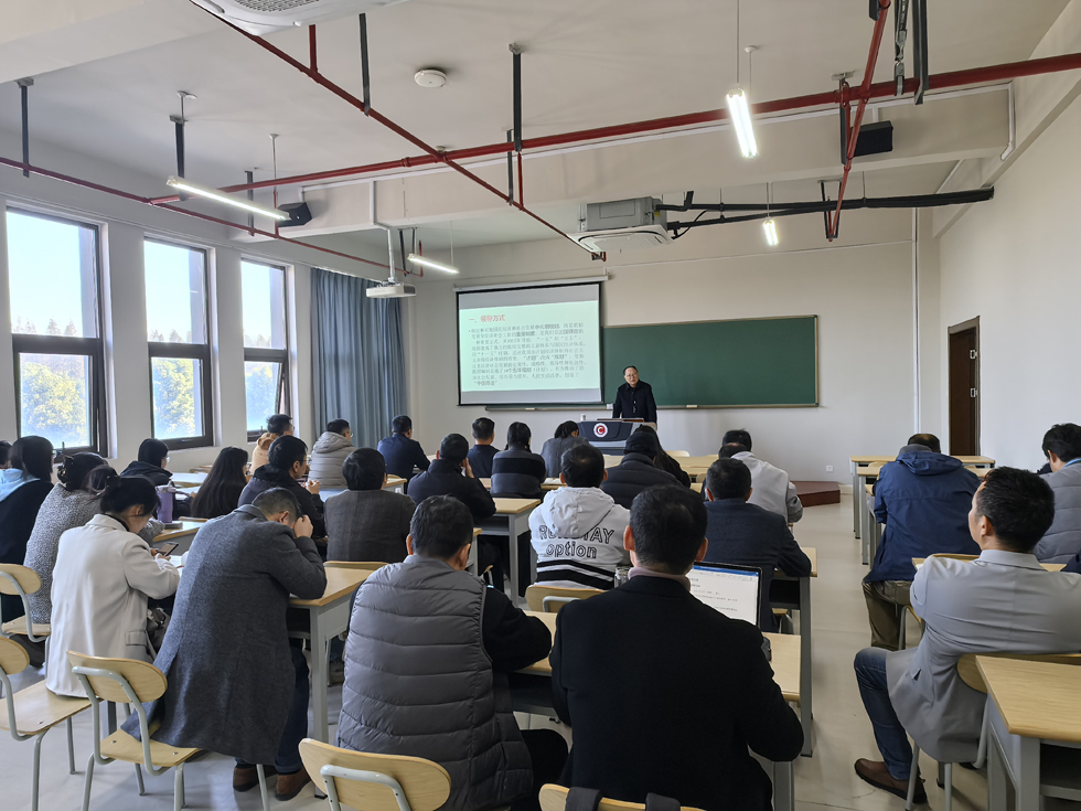 为深入学习贯彻党的二十届四中全会精神,进一步加强教职工的思想政治引领,11月19日下午,学院组织召开党的二十届四中全会精神辅导报告会,院长宋林飞作专题辅导,全体教职工参加会议,会议由党委书记潘道广主持。