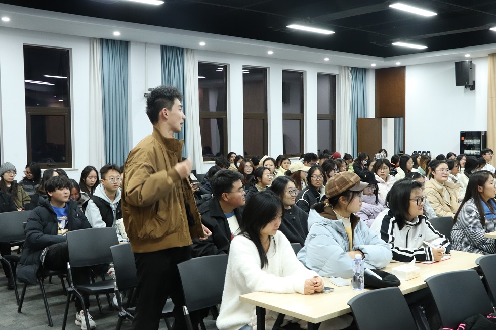活动伊始,周璐瑶、冯靖翔、欧阳浩三位同学,围绕“橘白科技:跨境电商数智化服务先驱者”项目,从公司概况、行业痛点、核心优势、服务案例、团队构成及未来规划等方面展开介绍,生动展现了两位校友创业反哺母校的担当精神与创新实践。在经验分享中,冯靖翔结合自身参赛经历,鼓励同学们“锚定目标、把握机遇、坚定前行”;周璐瑶围绕沟通与抗压能力展开讲述,真实案例引发强烈共鸣;欧阳浩则系统梳理参赛流程与个人成长要点,激励大家勇于站上赛事舞台锻炼自我。互动环节中,同学们踊跃提问,围绕备赛策略、团队协作、难点突破等方面与分享嘉宾深入交流,现场气氛热烈。最后,院团委副书记(学生)叶德浩结合学院实际情况与自身参赛经验,为同学们推荐专业类的竞赛与选题,并鼓励同学们积极参加创新创业竞赛。