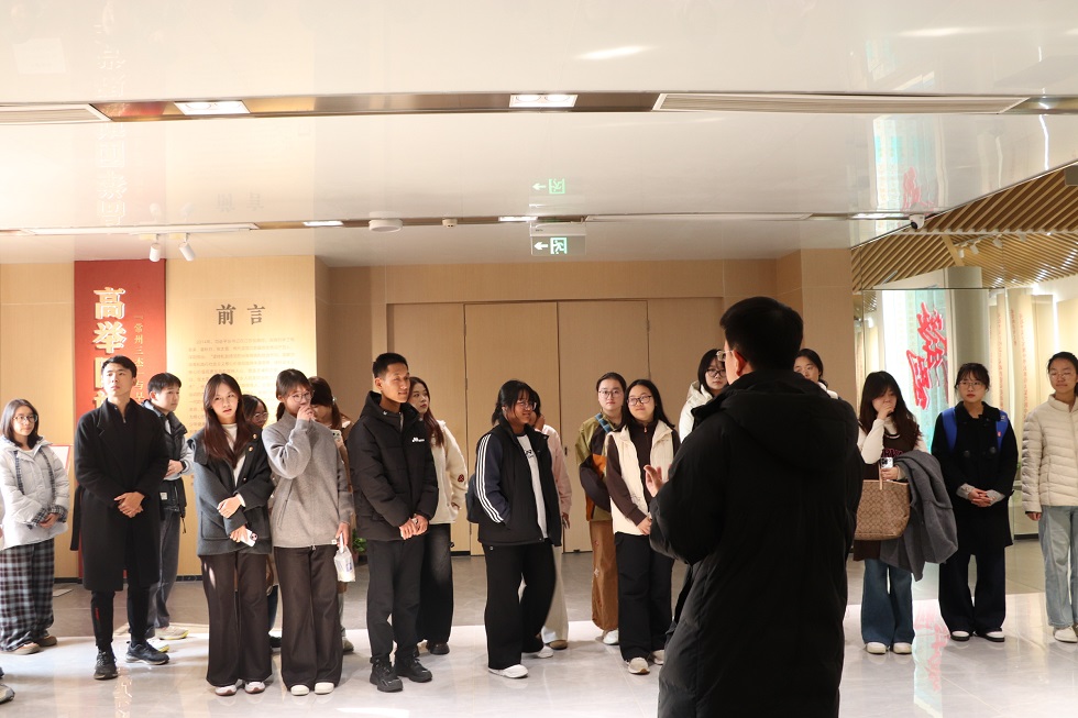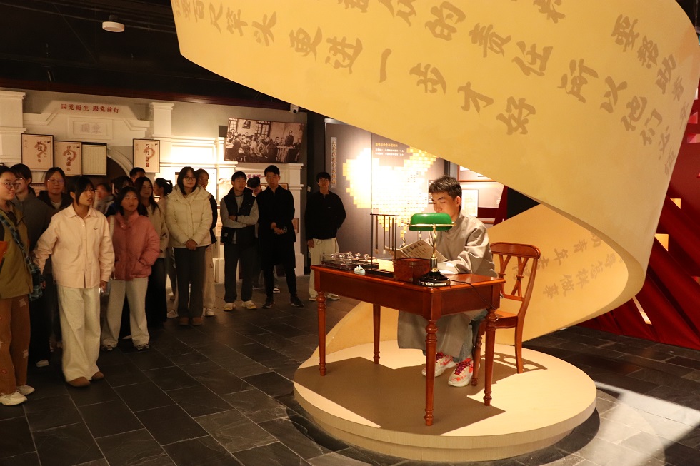 活动中,解说员首先带大家学习了习近平总书记提出的“关于实现中华民族伟大复兴的中国梦”的重要论述,引导同学们在新时代背景下更加清晰地理解青年一代肩负的责任与使命。随后,同学们在讲解员的引导下,依次参观了瞿秋白、张太雷、恽代英三位革命先驱的生平事迹展区,泛黄的历史照片、珍贵的书信手稿、复原的生活场景,生动再现了三位革命先辈短暂而光辉的一生。从瞿秋白“我是江南第一燕,为衔春色上云梢”的理想追求,到张太雷“愿化作震碎旧世界的惊雷”的革命豪情,再到恽代英“留得豪情作楚囚”的坚贞气节,每一段感人故事都让学子们深切感受到革命先辈为民族解放、人民幸福挺身而出的担当精神。